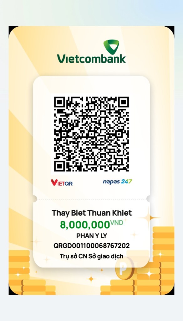 1. Chuyển khoản với nội dung “Số ĐTDĐ +HỌ TÊN + SỐ SUẤT HỌC + TBTK” (Vd: 092345331 NGUYEN THI NHUNG 01TBTK) tới Ngân Hàng Vietcom Bank, Chi nhánh Sở Giao dịch, SWIFT CODE: BFTVVNVX001 Tên tk: Phan Y Ly . Số tk: 0011000687672 .